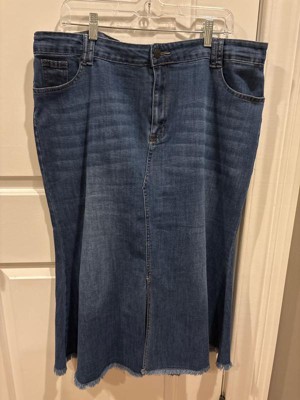 High waist, a line fishtail, and midi length with 4 pockets. Crafted from fine and stretchy denim to last