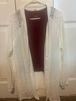 Combining elegance with effortless style, this plus-size open front knit cardigan features long sleeves with lace cutouts and an open front. The solid color is versatile enough to go with dressy or casual, and pairs perfectly with high-waisted pants or skirts to elongate your figure. The soft fabric keeps you comfortable all day long, making it a must-have for work, a date, or a casual outing. A must-have transitional piece that's both stylish and functional.