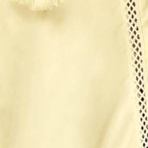 This blouse features hollow-out ruffle sleeves, a self-tie neck, a lace panel, and a solid color. It has a relaxed fit and is made of pure linen, making it super light and breezy. The woven blouse is designed with ruffle trim and lace hollow-out details, creating a relaxed and casual style. Wear this lightweight lace crochet blouse on the beautiful beach, and enjoy the fresh air of the sun and sea breeze during your leisure time. Based on the fit and style of this garment, recommend considering sizing up. Please refer to the size chart for detailed measurements to make the most informed decision.