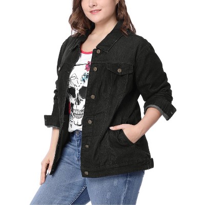 Agnes Orinda Women's Plus Size Long Sleeves Collarless Buttons Denim Jean Jackets