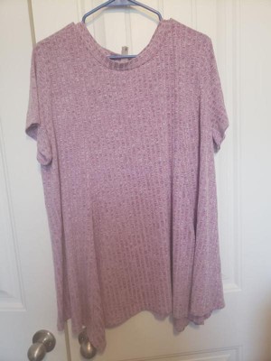 Women's Plus Size Ribbed Knit Asymmetrical Hem Crew Neck Short Sleeve Flowy Casual Tunic Tops - Agnes Orinda