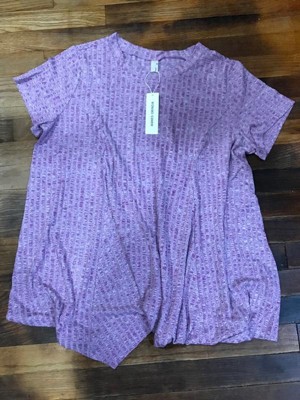 [This review was collected as part of a promotion.] This is a nice, flowy, lightweight top, very comfortable! I like the mottled purple color/pattern, almost like a space dye. The quality seems good, the seams are well-made. It's a blend of rayon and polyester, I'm more a fan of cotton, personally. Haven't had a chance to wash and wear it multiple times yet, so I can't speak to durability