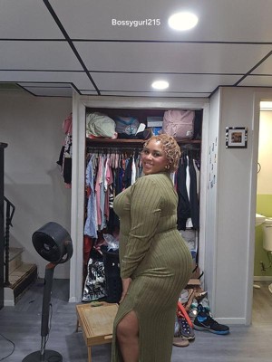 Women's Plus Size Ribbed Side Slit Crew Neck Long Sleeve Casual Slim Fit Bodycon Dresses - Agnes Orinda 1X Army Green