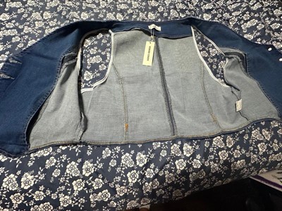 The jean vest is made of soft denim fabric that is comfortable for daily wear