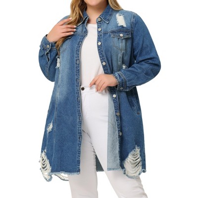 Women's Plus Size Stand Collar Buttons Long Sleeve Raw Hem Long Denim Jackets - Agnes Orinda - 2 of 4Women's Plus Size Stand Collar Buttons Long Sleeve Raw Hem Long Denim Jackets - Agnes Orinda - 3 of 4Women's Plus Size Stand Collar Buttons Long Sleeve Raw Hem Long Denim Jackets - Agnes Orinda - 4 of 4