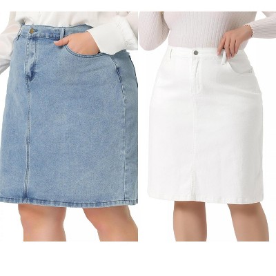 Agnes Orinda Women's Plus Size Tie Waist Button Front Pockets A-Line Midi Denim Skirts 2 Pcs