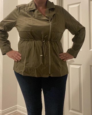 [This review was collected as part of a promotion.] A true classic this moto jacket is super soft and a must have for your Fall essentials! It’s pairs well with all your causal outfits and is great go too when you need a stylish look and lightweight jacket. I like this particular jacket even more because it comes in a favorite color of mine green, which you can match with almost everything. I’m wearing a size 1X and my measurements are height - 5’6, bra size - 38D, waist - 33in, hips -44in. I received an incentive to write this review.
