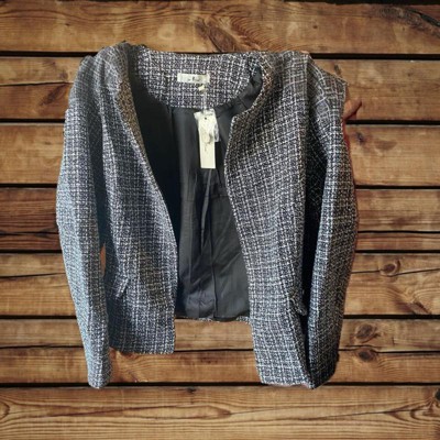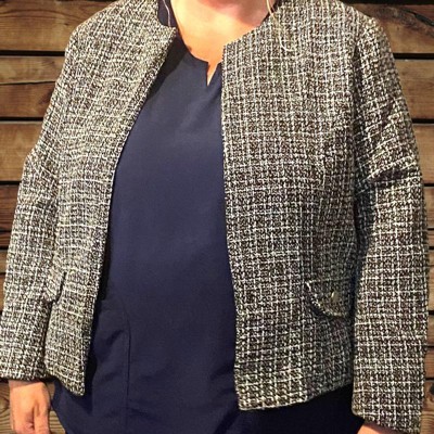 This open-front tweed blazer offers an upscale look and a timeless fashionable edge. It's soft, comfortable, and fits well while maintaining a stylish