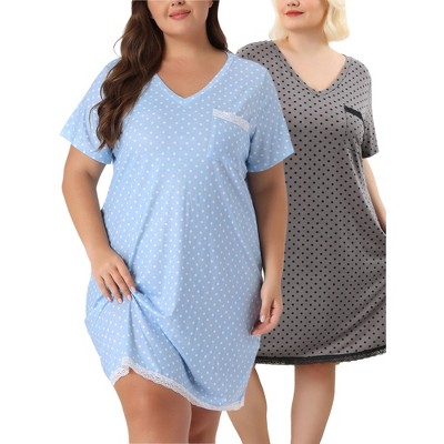 Agnes Orinda Womens Plus Size V Neck Polka Dots Short Sleeve Sleepwear Pajamas Nightgown 2X Gray