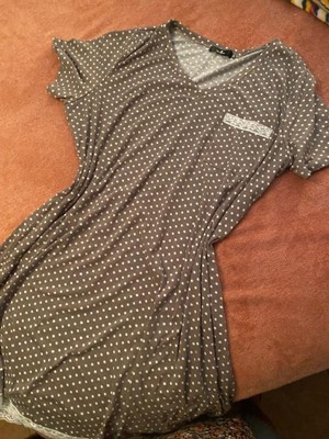 Reasonably priced for a summer night shirt. Light grey polka dots with a pretty pocket detail. (the picture makes the grey darker than it actually is) Soft and comfortable for warm summer nights. I normally prefer pajamas but this was comfortable to sleep in and I didn't feel like I was getting twisted up when I roll over at night. This was given to me in exchange for my review.