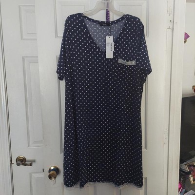 Agnes Orinda Womens Plus Size V Neck Polka Dots Short Sleeve Sleepwear Pajamas Nightgown 2X Gray