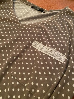 Reasonably priced for a summer night shirt. Light grey polka dots with a pretty pocket detail. (the picture makes the grey darker than it actually is) Soft and comfortable for warm summer nights. I normally prefer pajamas but this was comfortable to sleep in and I didn't feel like I was getting twisted up when I roll over at night. This was given to me in exchange for my review.