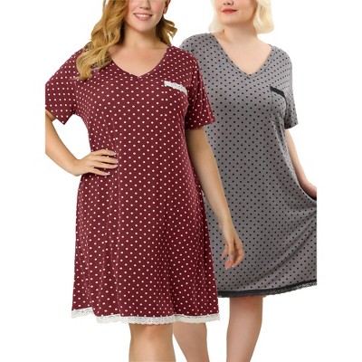 Agnes Orinda Women's Plus Size V Neck Short Sleeve Polka Dots Nightgowns - 2 of 4Agnes Orinda Women's Plus Size V Neck Short Sleeve Polka Dots Nightgowns - 3 of 4Agnes Orinda Women's Plus Size V Neck Short Sleeve Polka Dots Nightgowns - 4 of 4