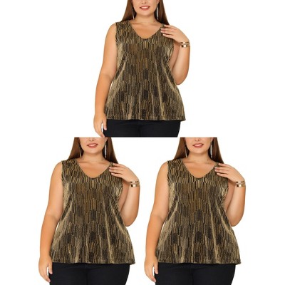 Agnes Orinda Women's Plus Size V Neck Spaghetti Strap Glitter Metallic Concert Party Packs Camisoles 2X 3 Black Gold