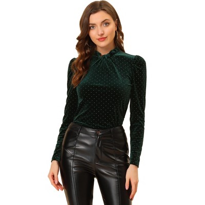 Agnes Orinda Women's Plus Size Velvet Long Sleeve Festival Fashion Top Green 3X