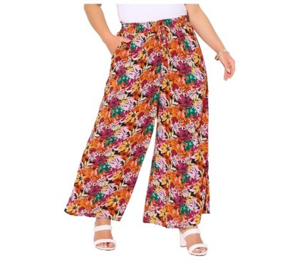 Introducing the plus size printed tie wide leg pants, an addition to your wardrobe. These trousers are designed to combine style and comfort uniquely. The eye-catching print on the trousers is what makes them truly stand out. The beautiful pattern is both trendy and timeless with a floral print for a feminine touch. It is sure to draw attention and make you look fashionable. These pants are made from a blend of polyester and spandex, ensuring a comfortable fit while allowing freedom of movement. The loose and flowy design, complemented by practical pockets, makes them perfect for various occasions like casual outings, parties, or beach vacations. Pair them with different tops and footwear to create versatile looks that suit your style.