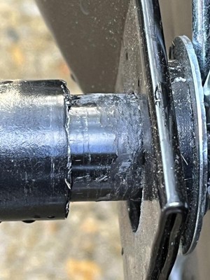 Model 45-0606 The plastic flanges that fit over the axles were tight. The tube arm hole caused the flange to wear out right at the edge where the thicker part is, within 30 min! The arm hole thin edge was free to grind away at the axle. the axle had a groove cut into it. I filled in the parts-replacement request on the Agri-Fab site, giving them ALL the details. They still have not responded after 5 days! I will be returning this and never purchasing an Agri-Fab product again.