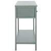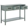 Freshen up a hallway or living room wall with the country styled Aiden Console Table. Aidens barn blue finish gives a modern touch to its traditional styling, seamlessly adapting to any style�decor. Three drawers and lower shelf provide ample storage and display.