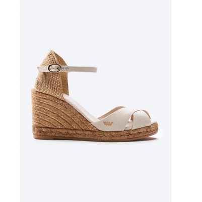 Aiguablava Canvas Espadrille Wedges – Elegant High Wedges with a Chic Ankle Strap Elevate your wardrobe with the Aiguablava High Wedge Espadrilles—versatile, stylish, and designed for year-round wear. Featuring a trendy crossed open-toe canvas upper and a comfortable high jute wedge, these sandals add a touch of effortless elegance to any outfit. Handcrafted in Spain with traditional techniques, each pair offers genuine Spanish craftsmanship and timeless Mediterranean charm. More than just shoes, the Aiguablava espadrilles combine beauty and comfort, ready to accompany you on every stylish adventure.