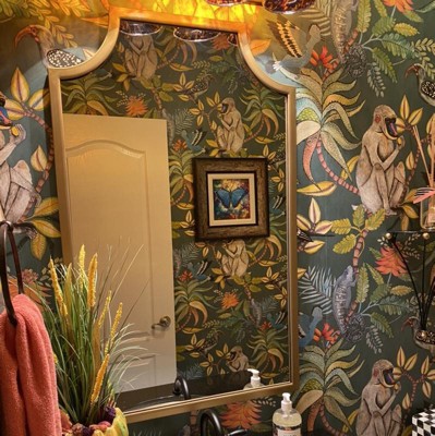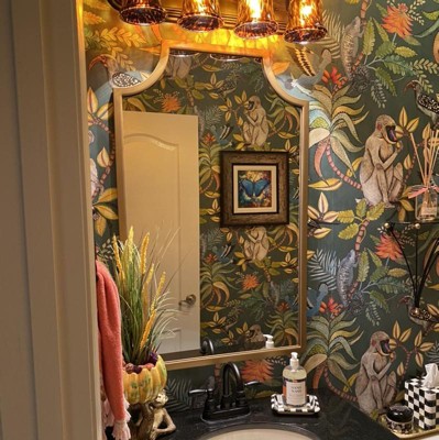 Stylish and modern, the Aimee Wall Mirror is an eye-catching addition to any home. A sturdy steel frame with a gold finish and pagoda-styling creates visual interest that can be paired with a variety of décor. Simple, yet fashionable, the Aimee Wall Mirror can be used as an accent or bathroom mirror. This mirror is stylish enough to stand on its own, or it can be easily paired with the rest of the Aimee Collection.