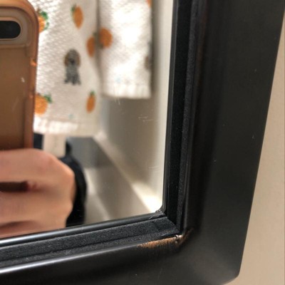 Perfect fit for my bathroom. I needed a tall, thinner mirror and this one works great. Nearly all black with a few light rubbed bronze finishes in the corners.
