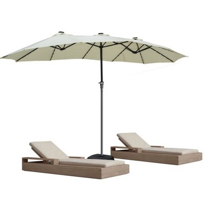 Ainfox 15ft Large Patio Umbrella With LED Lights And Umbrella Base
