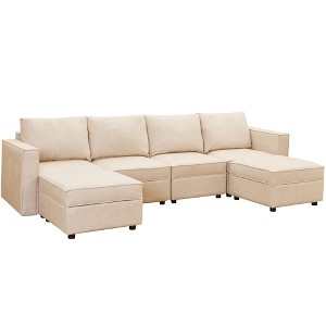 Ainfox 4-Seat Storage Sofa And 2 Ottoman Beige