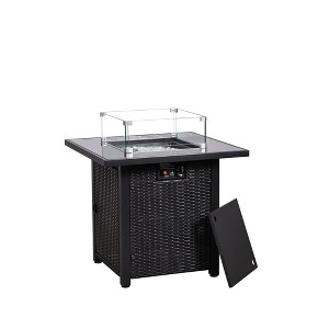 Ainfox Propane Gas Fire Pit Table, Rectangular Fire Pit With Glass Wind Guard For Outside Patio Deck Garden