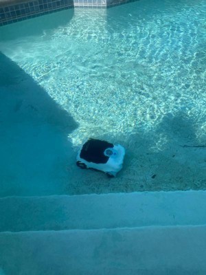 [This review was collected as part of a promotion.] This pool robot vacuum is amazing! First it only took less than two hours to fully charge and then within an hour it cleaned our entire pool, it had great maneuverability around the pool and was able to turn at a dime once it detected something in the way.