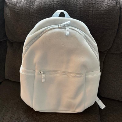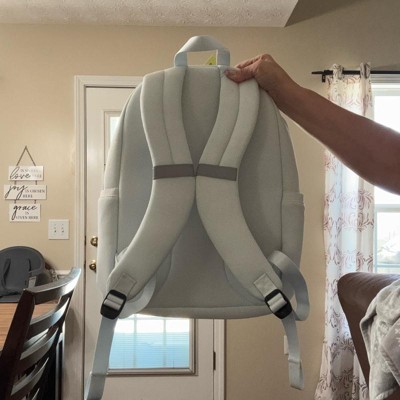 This backpack by all in motion is a nice simple backpack. For the price tag I was not truly blown away by any of the features. The color options were nice. The material is a nice quality and seems to hold up great. This is your standard backpack with laptop pocket inside. Not any super exciting pockets. It does have a big main compartment which is nice.