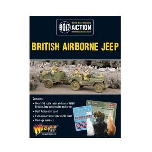 In addition to normal Jeeps, the airborne forces at Arnhem were supplied with special Recce Jeeps, fitted with single or twin Vickers machine guns.British Airborne Recce Jeep in action.Using speed as its main offensive and defensive tool, this recce Jeep is able to become a threat to any undefended target. Use the jeep to hunt down auxiliary and support units such as FOO teams, Lieutenants and immobile weapon teams.Contains: One 1/56 scale resin and metal WWII British Jeep w/trailer and crew Bolt Action stat card Full-color waterslide decal sheet Damage markers