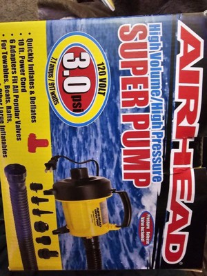[This review was collected as part of a promotion.] The Airhead High Volume, High-Pressure Super Pump has been a total game-changer for our summer adventures! With its 120 volts and 3.0 PSI, it quickly inflates and deflates all our favorite water toys and inflatables. The 10 ft power cord gives us plenty of flexibility, and the six adapters ensure it fits all our gear, from towables to boats to trampolines. No more struggling with manual pumps or waiting ages for things to inflate – this pump gets the job done in no time. Plus, the pressure release valve adds an extra layer of safety and peace of mind. It's become an essential part of our outdoor fun, and I can't recommend it enough to anyone looking for a reliable, efficient pump for their summer adventures! The noise level is kinda loud.
