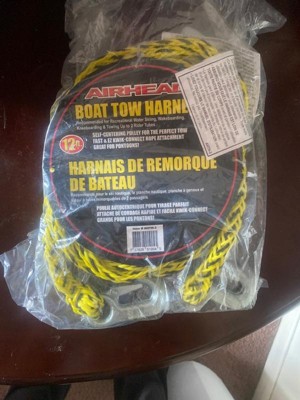 Airhead Self Centering Tow Harness 1-2 Rider Tow Rope 12' Long - Yellow/Black