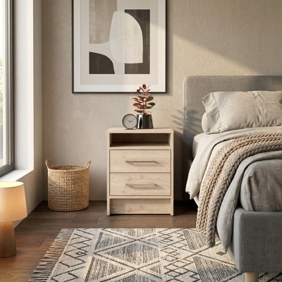 Airsurfer 2-Drawer Light Oak Nightstand Modern Bedroom Nightstand Storage Solution for Bedroom Organization