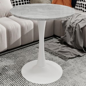 Elevate your dining experience with this elegant modern dining table, featuring a sophisticated gray marble-look top and sturdy white pedestal base. Ideal for both kitchens and dining rooms, this round table adds a touch of contemporary charm and blends seamlessly with various decor styles. Designed to comfortably accommodate small gatherings, it is perfect for intimate dinners or casual brunches. Its durable construction ensures lasting beauty and functionality, making it an exceptional choice for your home.