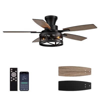 Airsurfer 52" Traditional Pull Chain Ceiling Fan with Iron Light Shade, E12 Bulb, 5 Blades, AC Motor, 3-Speed, Black, Dual Walnut Wood Grain