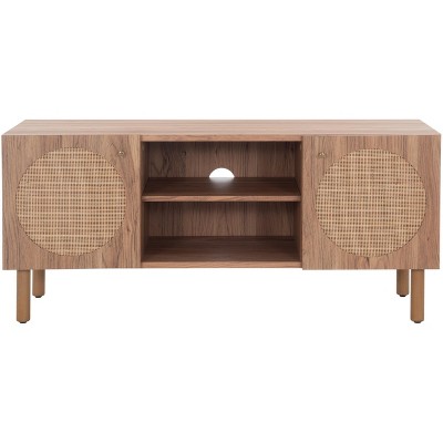 Airsurfer 55.12" Rattan TV Stand with Double Sliding Doors, Adjustable Shelf, Solid Wood Legs, White TV Console for Living Room - 1 of 4