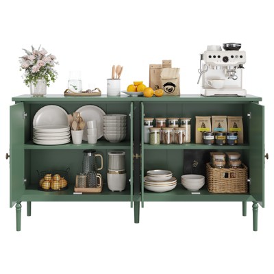 Airsurfer 60 Inch Storage Buffet Cabinet, Sideboard with Floral Carvings, Wood Legs, Adjustable Shelves, Storage Cabinet for Kitchen, Dining Room