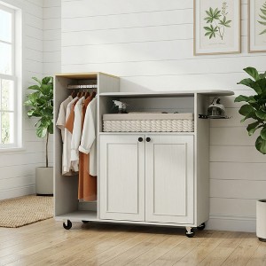 Transform your laundry routine with our versatile Laundry Organizing Station. Designed in a sleek light gray finish, this compact solution brings order to your home with style. Perfect for maximizing space, it features a sturdy countertop for folding, a rod for hanging garments, and ample cabinet storage for all your laundry essentials. Whether you're sprucing up a small apartment or enhancing your laundry room, this station is the ultimate blend of functionality and elegance, making household chores a breeze.