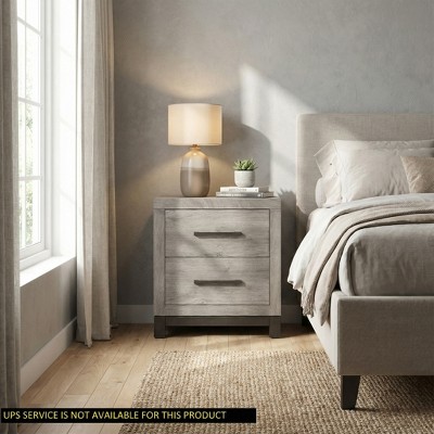 Enhance your bedroom with this stylish driftwood gray nightstand. Designed for modern homes, this compact piece brings both style and functionality to your space. With ample storage provided by two spacious drawers, it's perfect for keeping your bedroom essentials within reach. Its elegant finish complements various d¨¦cor styles, while its sturdy construction ensures long-lasting use. Whether placed beside your bed or in your guest room, this nightstand is an eye-catching addition that keeps any room organized and tidy.