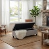 This storage bench blends glam style with practical functionality, making it a versatile addition to bedrooms, living rooms or entryways. Its button-tufted upholstery and neutral fabric create a chic, modern-luxury aesthetic that complements glam, contemporary or transitional decor. The lift-top seat reveals hidden storage space—ideal for organizing blankets, pillows, shoes or small daily items, effectively optimizing home storage. The thick padded cushion ensures comfortable seating, whether used as a bed end stool for rest, an entryway bench for changing shoes, or extra seating for guests. With a solid frame and sturdy black legs, it delivers reliable support for regular, high-frequency use. Beyond utility, this bench serves as a polished decorative accent, elevating the room’s cozy, elegant atmosphere while meeting daily seating and storage needs.
