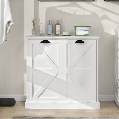 - Durable Wooden Construction:Crafted with high-quality wood, the cabinet offers a robust build that can withstand everyday use, providing reliable storage for your laundry essentials.