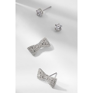 This set of pretty pave cubic zirconia bow earrings and classic cubic zirconia studs are the perfect finishing touch to every look and a jewelry box staple.