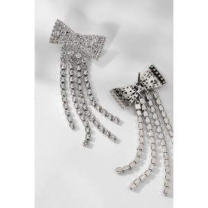 Looking for a touch of girly glam to elevate your look? You can't go wrong with our stunning bow-shaped earrings with cascading cubic zirconia tassels that will have you sparkling all night long.