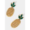 These pineapple motif earrings create an elevated fun look featuring sparkling cz stones with a vibrant green touch. Perfect for vacation or adding a Dolce Vita vibe to any outfit.