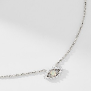 Long believed to protect the wearer from harm, this classic evil eye necklace sparkles with cubic zirconia accents and a luminous simulated opal.