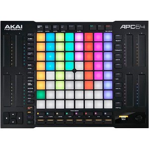 The Akai Professional APC64 enables in-depth control of Ableton Live for music creation and live performance. The 8x8 pad matrix features 64 velocity-sensitive RGB pads for launching clips (and much more) in the darkest studios and under the brightest stage lights. Add expression to performances with eight fully assignable Touch Strip controllers. Place vibrato, modulation, filter cutoff and other parameters at fingertips; adjust volume or effects sends to control mix without missing a beat; and always keep track with APC’s color screen displaying information about what ’re controlling and where levels are.