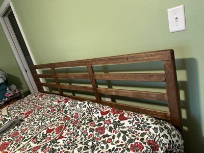 The charming Akemi headboard creates a light and airy backdrop that transforms any bedroom. Made in Malaysia, the headboard is crafted from sturdy wood showcasing a natural ash walnut finish. Its wide-set slat design allows light to flow more easily throughout the room, providing a more open feel in tight places. Requiring assembly, the Akemi is supported by stable legs with six pre-drilled holes for easy height customization. The Akemi delivers excellent back support in stunning contemporary style for a superb addition to the modern bedroom.