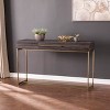Stow everyday essentials with this narrow sofa table. A long tabletop provides a spacious landscape for potted succulents, modern decor, or book collections, while a sleek storage drawer tucks away keys and mail. A shiny metal frame highlights the mixed-material construction and crafts a chic two-tone look in your hallway or living room. Slide this skinny console table behind your sofa to corral TV accessories and tonight's movie marathon list,or station in your entry to make a stylish first impression.