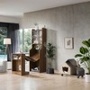 - The cabinet is crafted from solid walnut-toned wood with metal hardware accents, featuring a durable finish and reinforced joints for long-lasting durability.